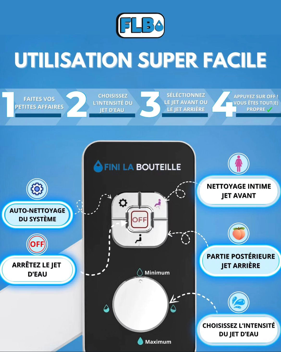 FLB vous aide à réduire jusqu'à 80 % votre utilisation de papier toilette, voire à l'éliminer complètement selon vos préférences et vos habitudes !