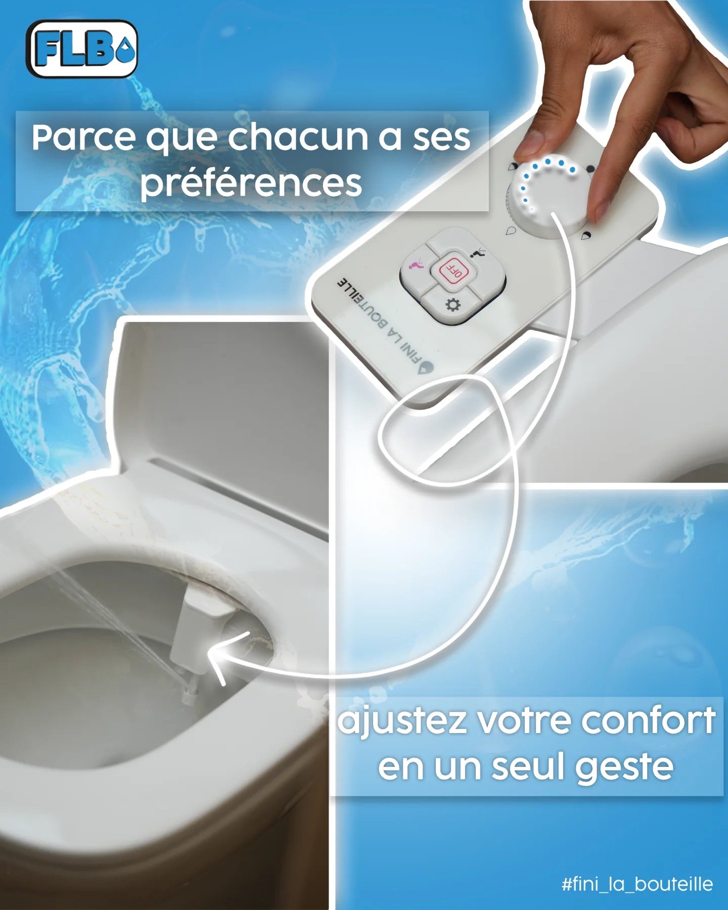 FLB vous aide à réduire jusqu'à 80 % votre utilisation de papier toilette, voire à l'éliminer complètement selon vos préférences et vos habitudes !